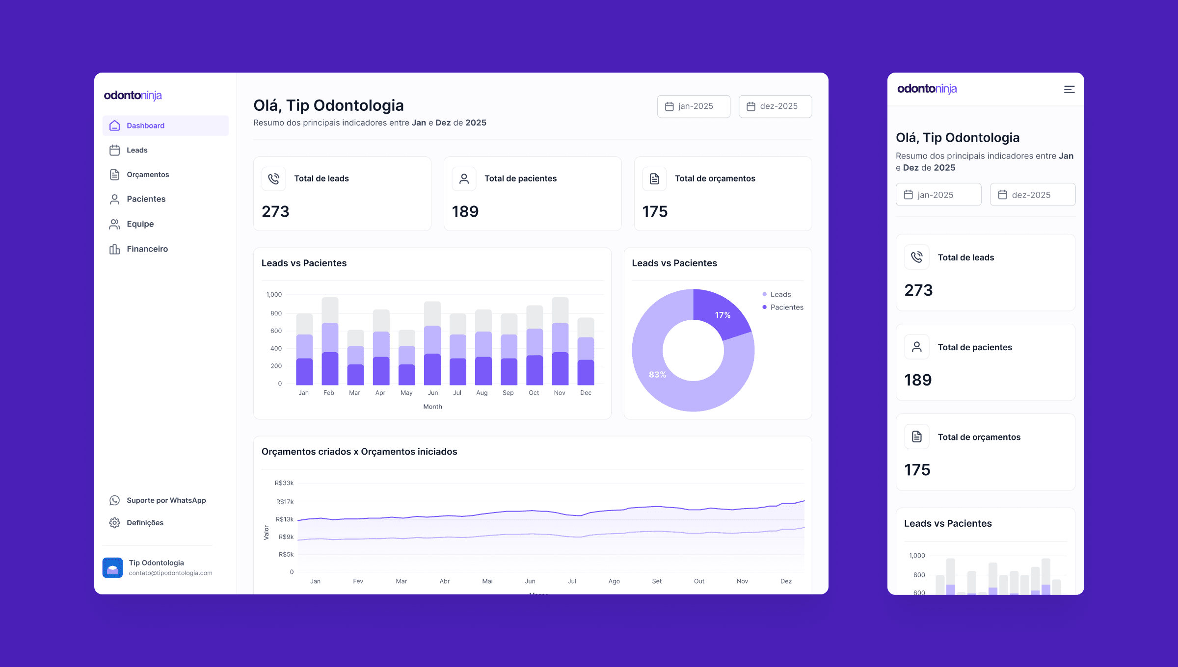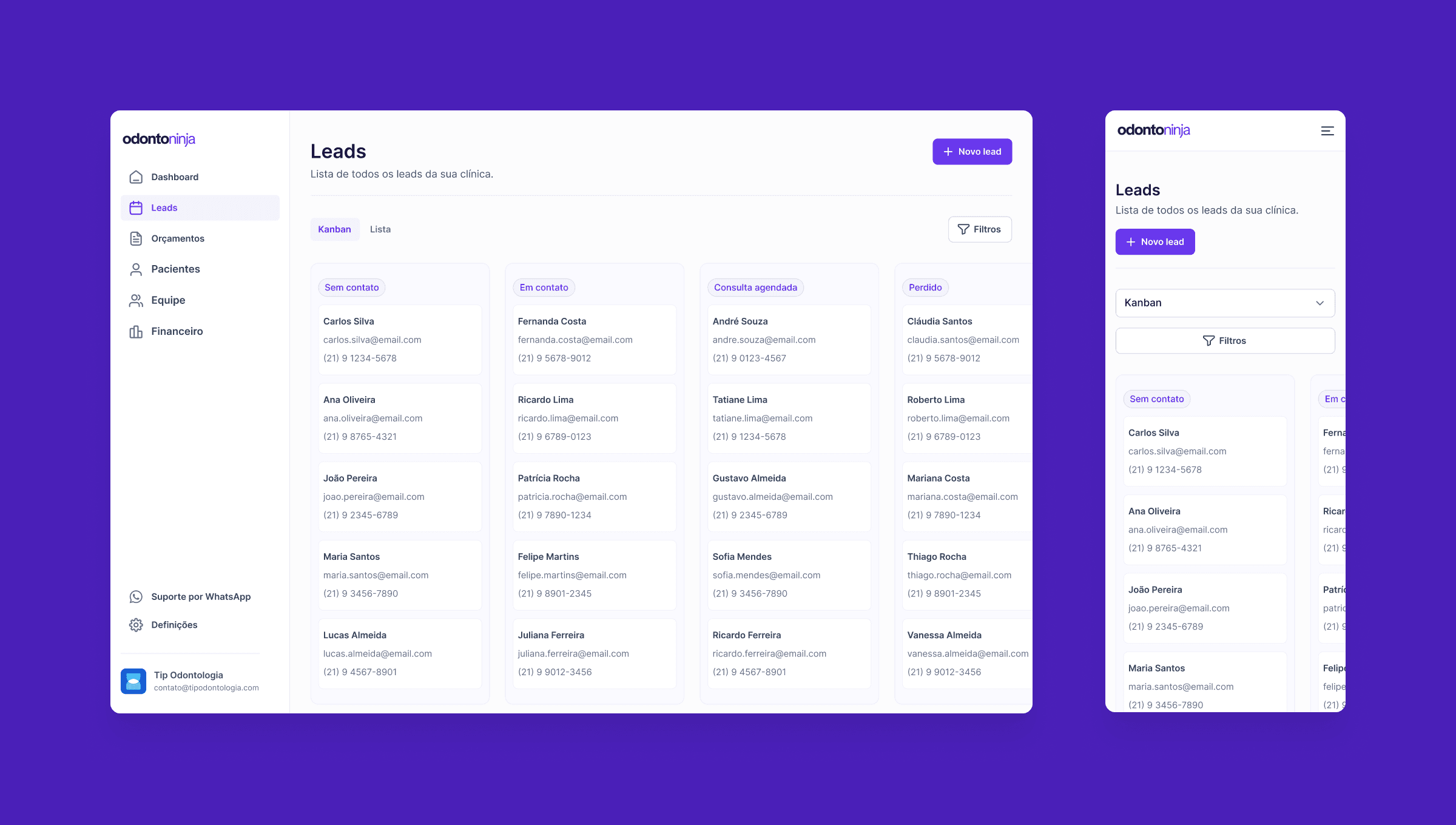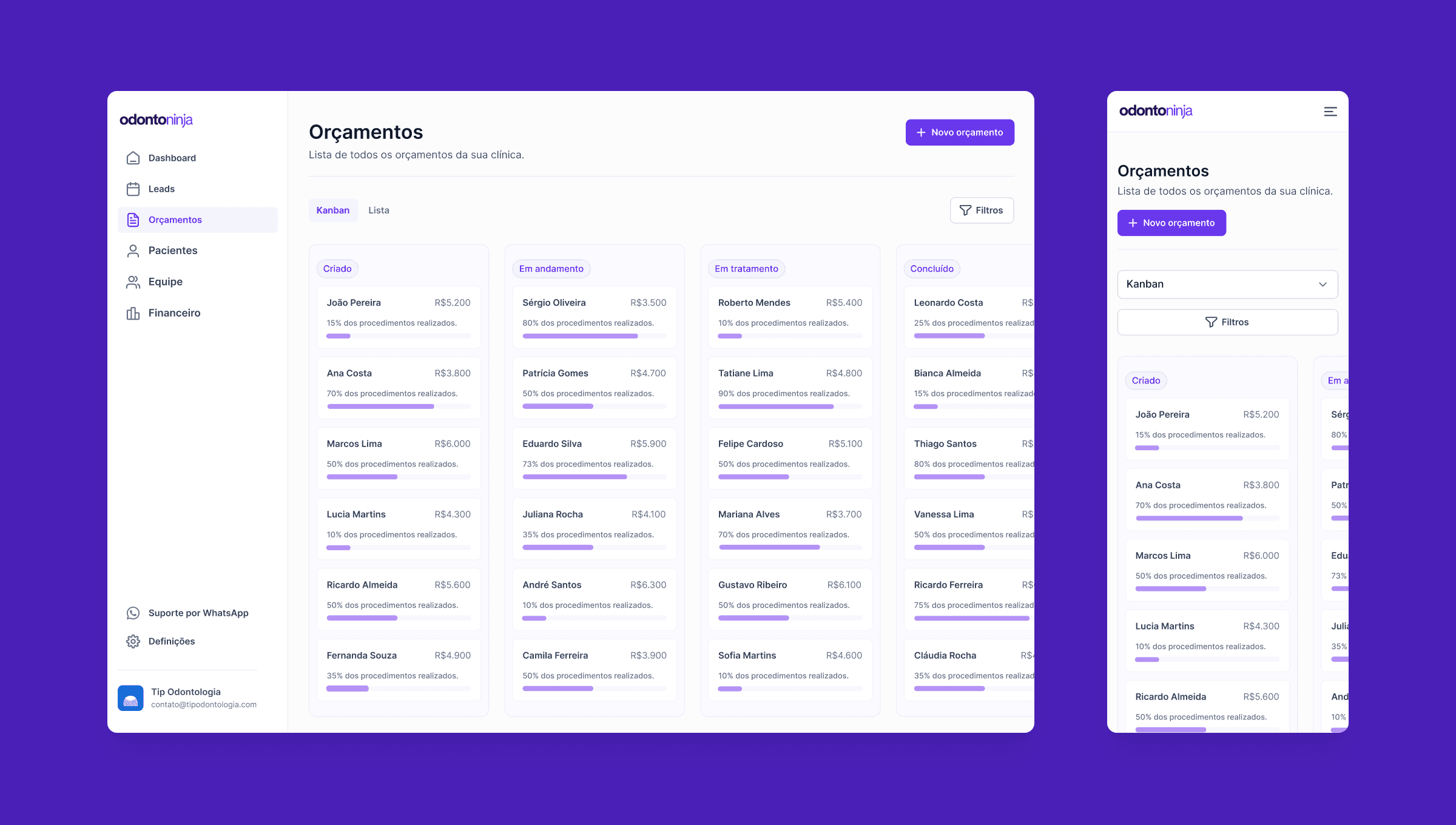 Destacando a organização e automação nos consultórios, evidenciando como o software facilita a criação de um fluxo contínuo de novos pacientes e a retenção dos já existentes. Além disso, o Odonto Ninja inclui recursos como relatórios detalhados, armazenamento de informações clínicas, e opções de personalização para o acompanhamento e criação de orçamentos, tudo em um ambiente intuitivo e seguro.